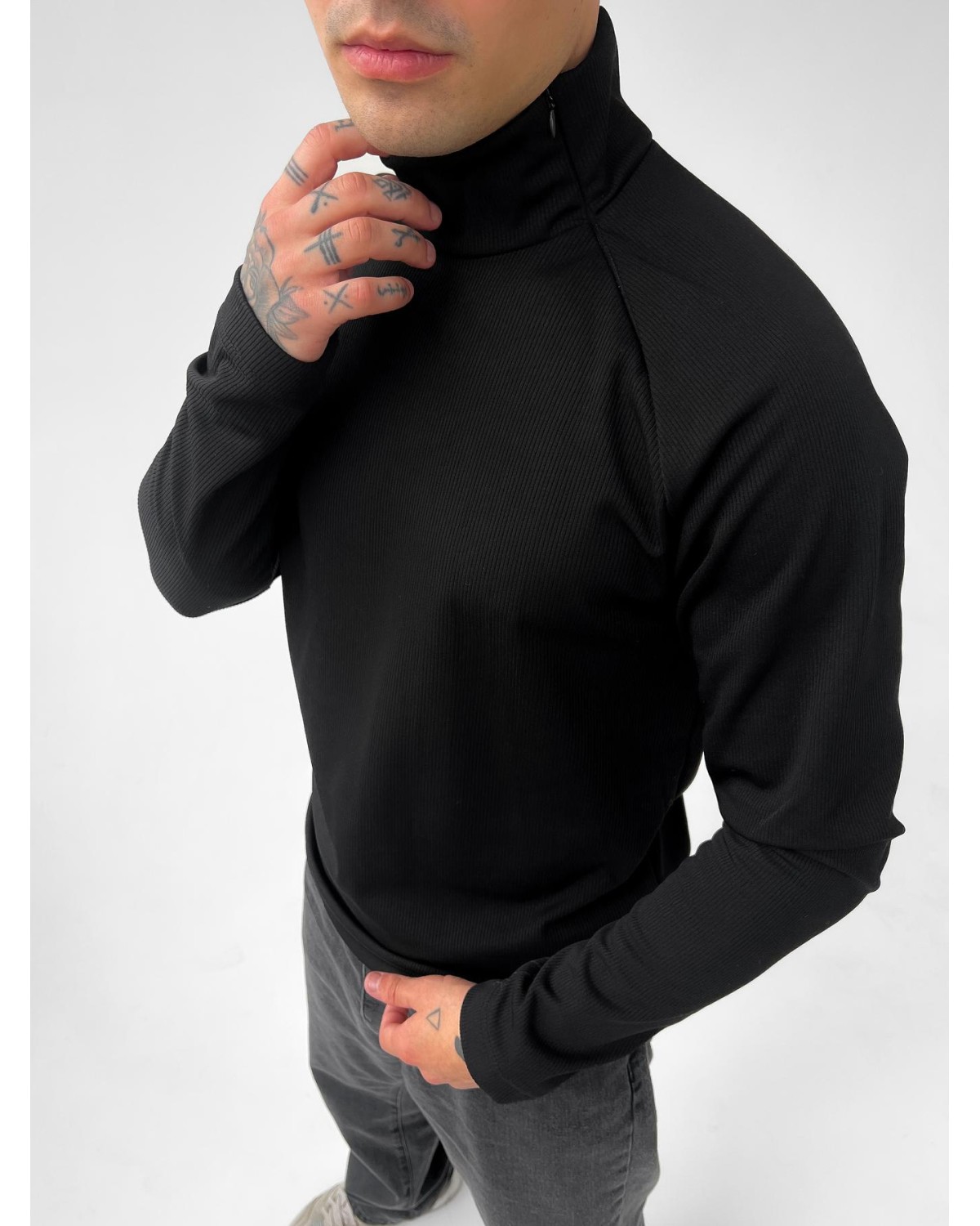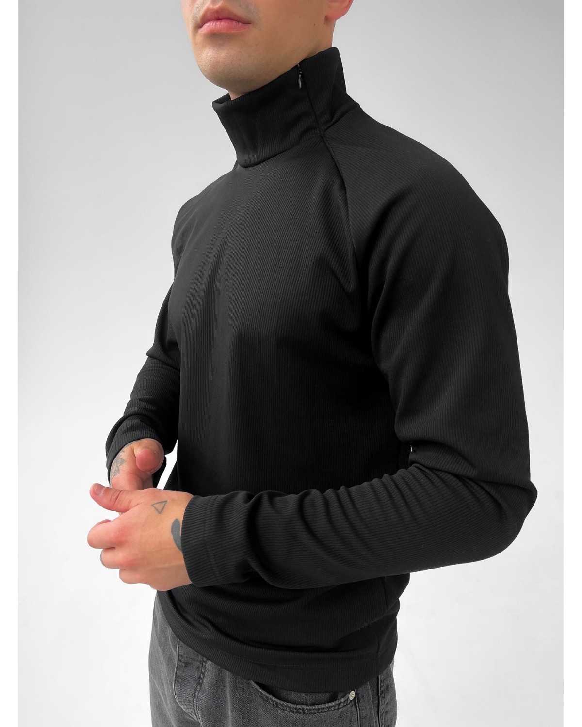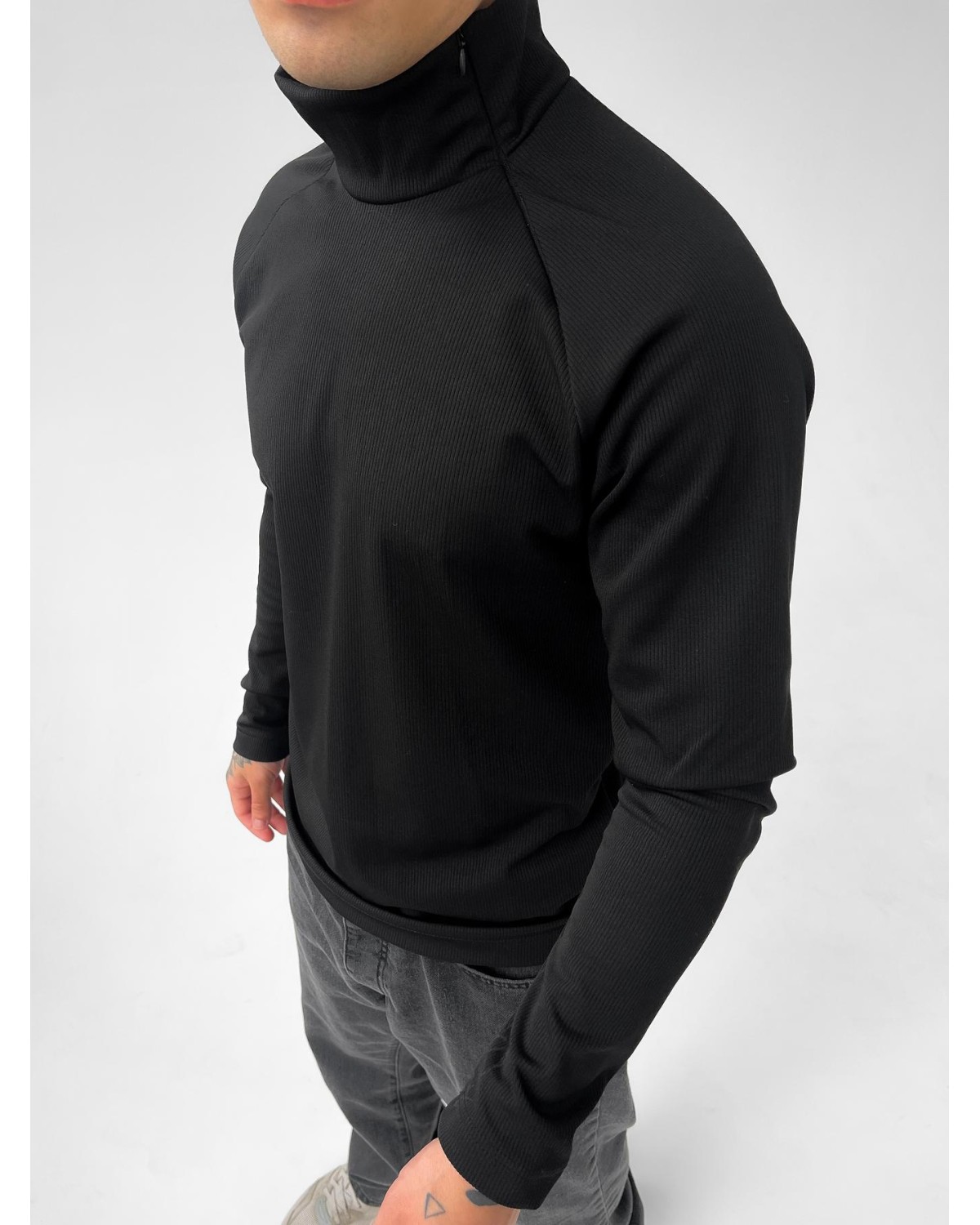 Теплий гольф у чорному кольорі для сезону осінь–зима–весна. Модель виконана з тканини рубчик на мікро-флісі, яка добре утримує тепло та комфортна у носінні.