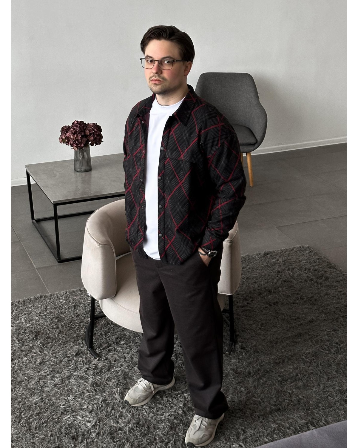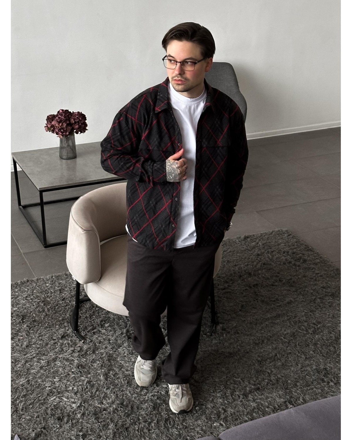 Стильна сорочка у червоній клітинці зі стилем «згин». Універсальна модель для щоденного носіння, яка легко доповнює базові та повсякденні образи.