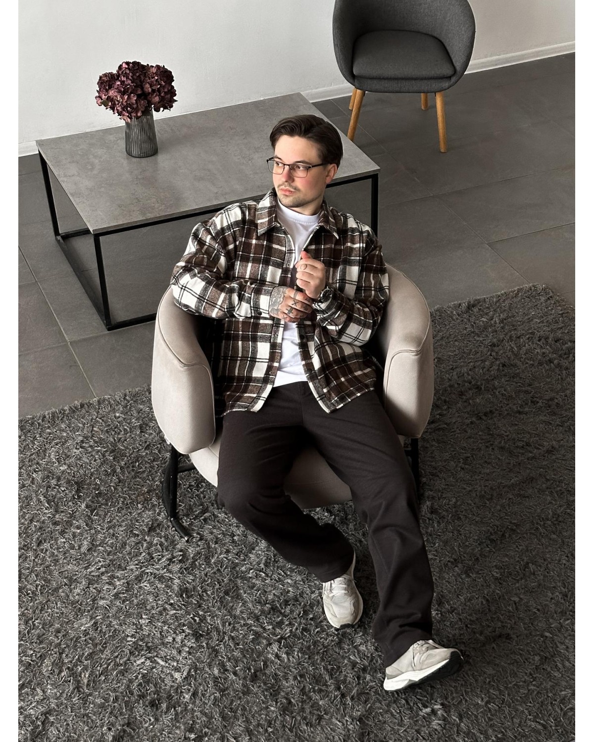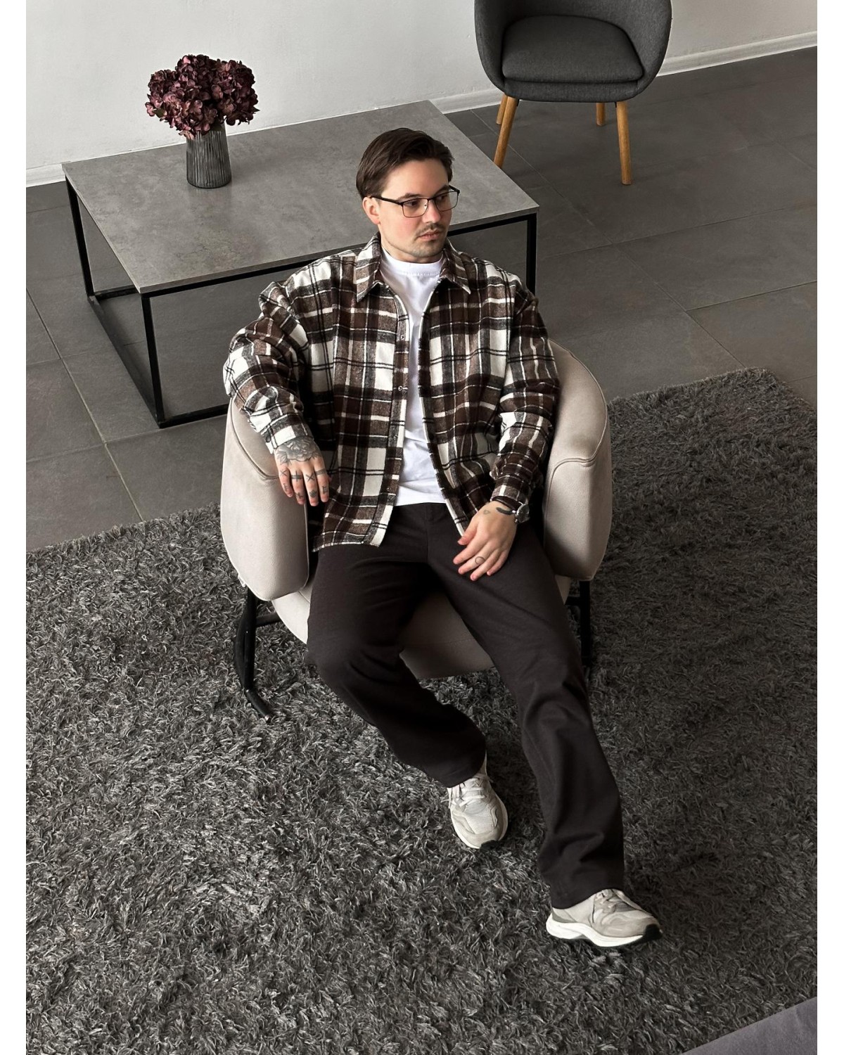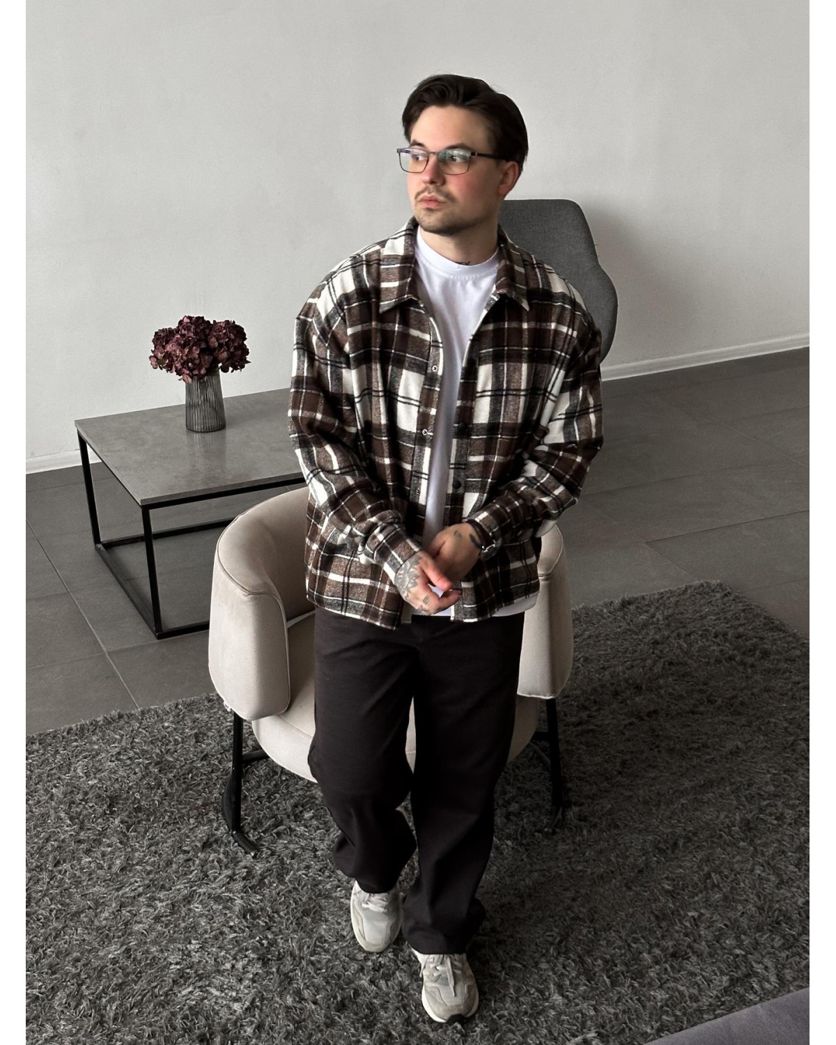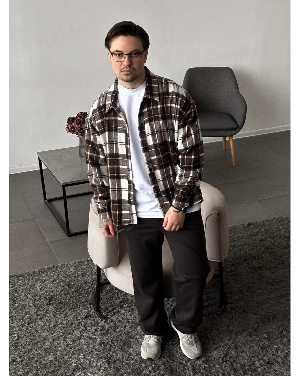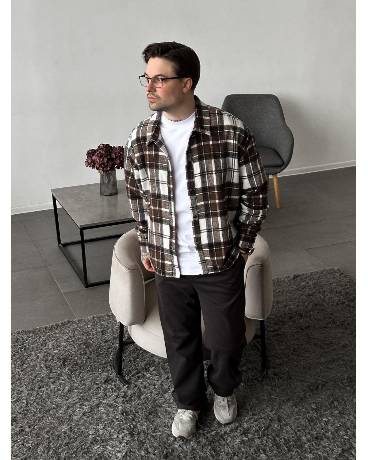Стильна сорочка у поєднанні шоколадного та білого кольорів. Універсальна модель для щоденних образів, яка виглядає стримано та легко комбінується з базовим гардеробом.
