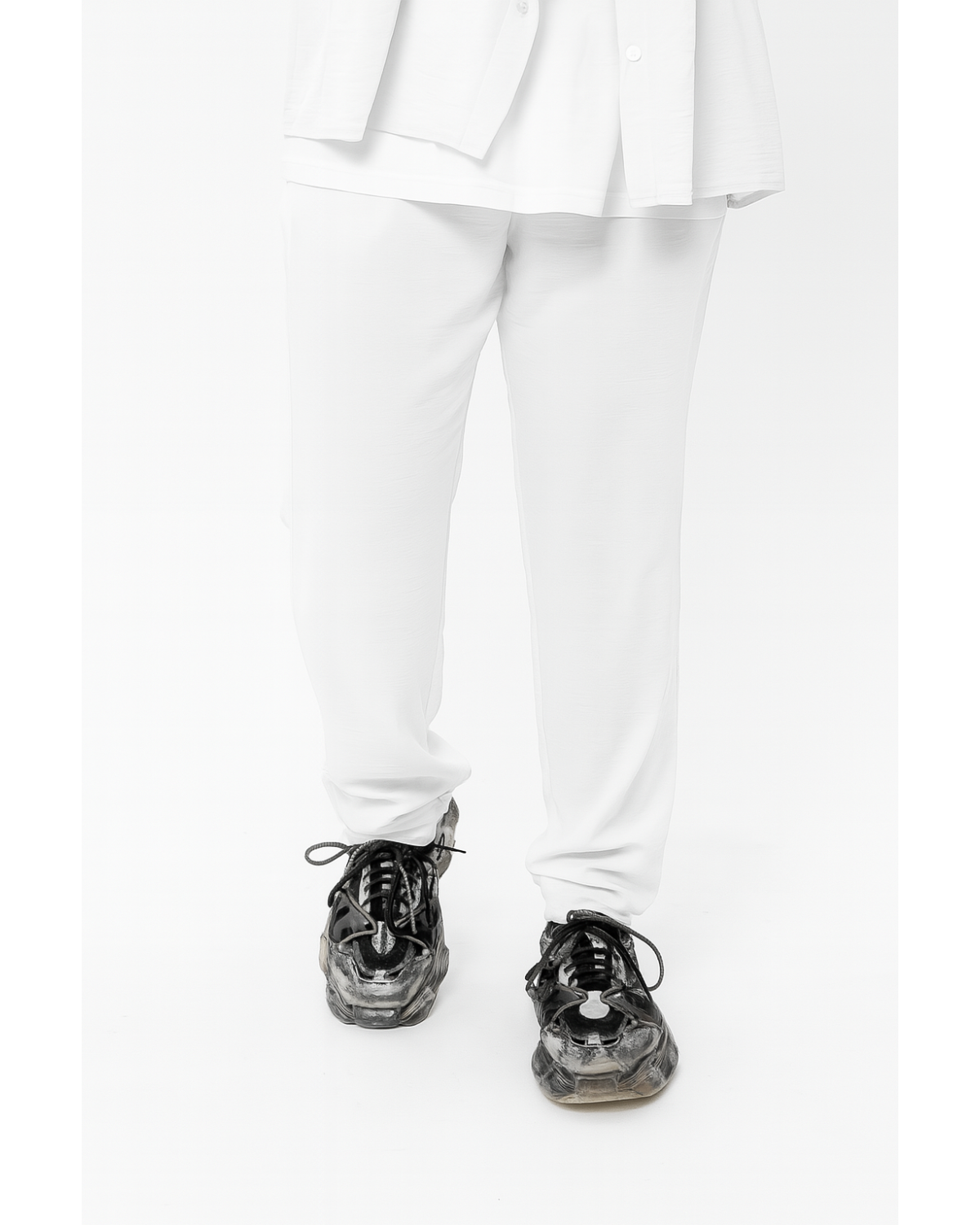Легкі штани для сезону весна–літо. Модель виконана з американського крепу (жатка) у білому кольорі, що забезпечує комфорт у теплу погоду.