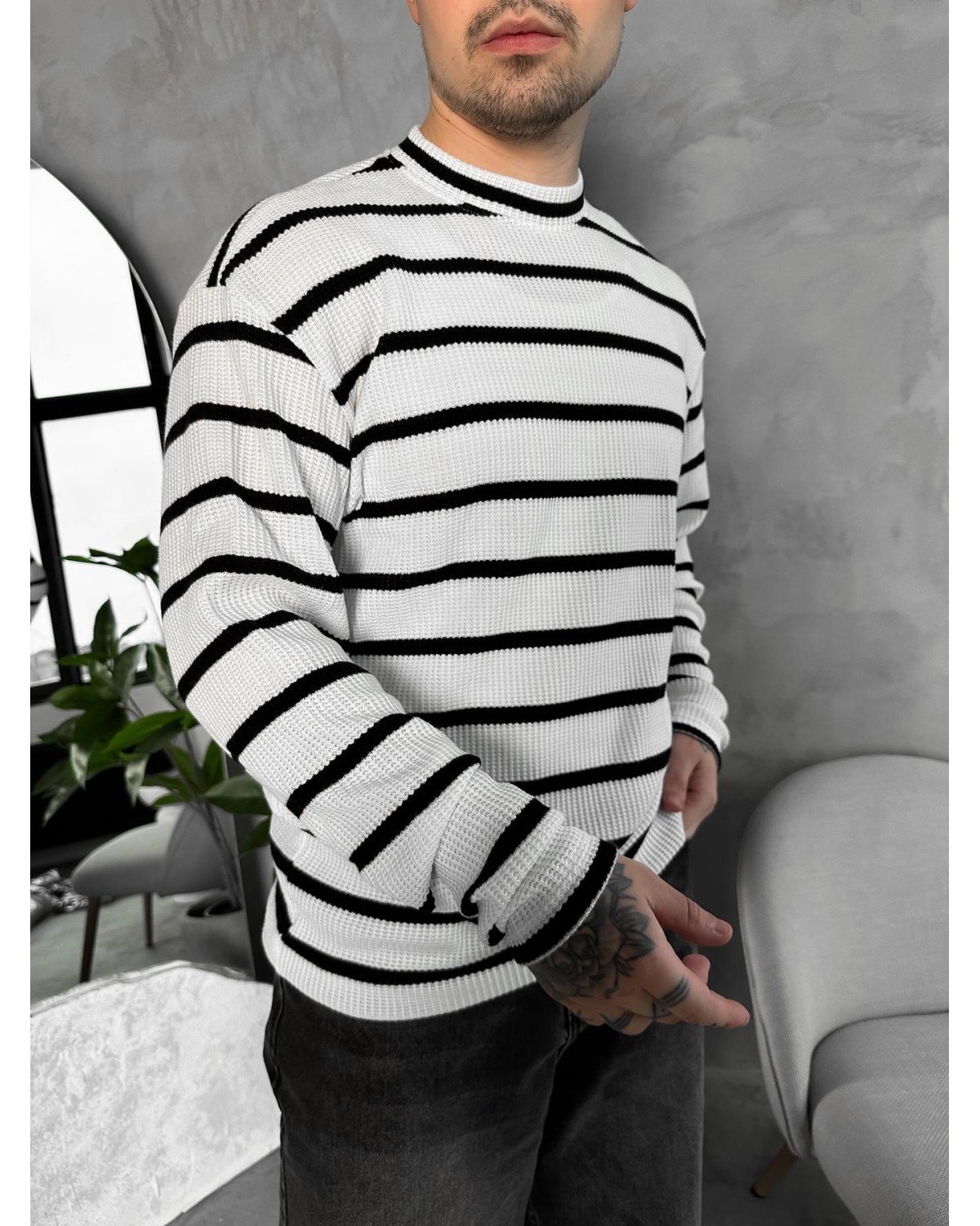 М’який светр із контрастним візерунком «зебра» у білому кольорі. Модель підходить для сезону осінь–зима–весна та додає виразності повсякденним образам.